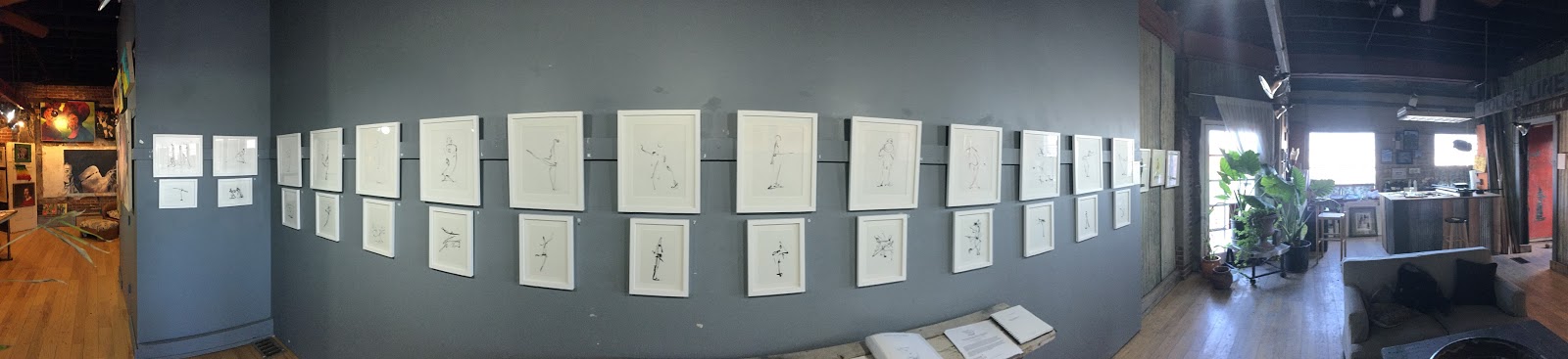 These ink gesture drawings were done using a Japanese ink brush pen on paper during dance rehearsals at the Carlsen Center located on the Johnson County Community College campus in 2014 and 2015. One of my favorite aspects of life drawing is how one expresses the emotion of movement of the human form. The expression of a fleeting moment took precedent over documenting the human form. It is an attempt to express the energy, tension and movement of both the dance rehearsal session and my skills as a visual artist. So, the abstract qualities are stronger in some of the drawings. They are representations of what I saw and felt at those moments as an artist. I see these gesture drawings as virtual collaboration with the dancers.